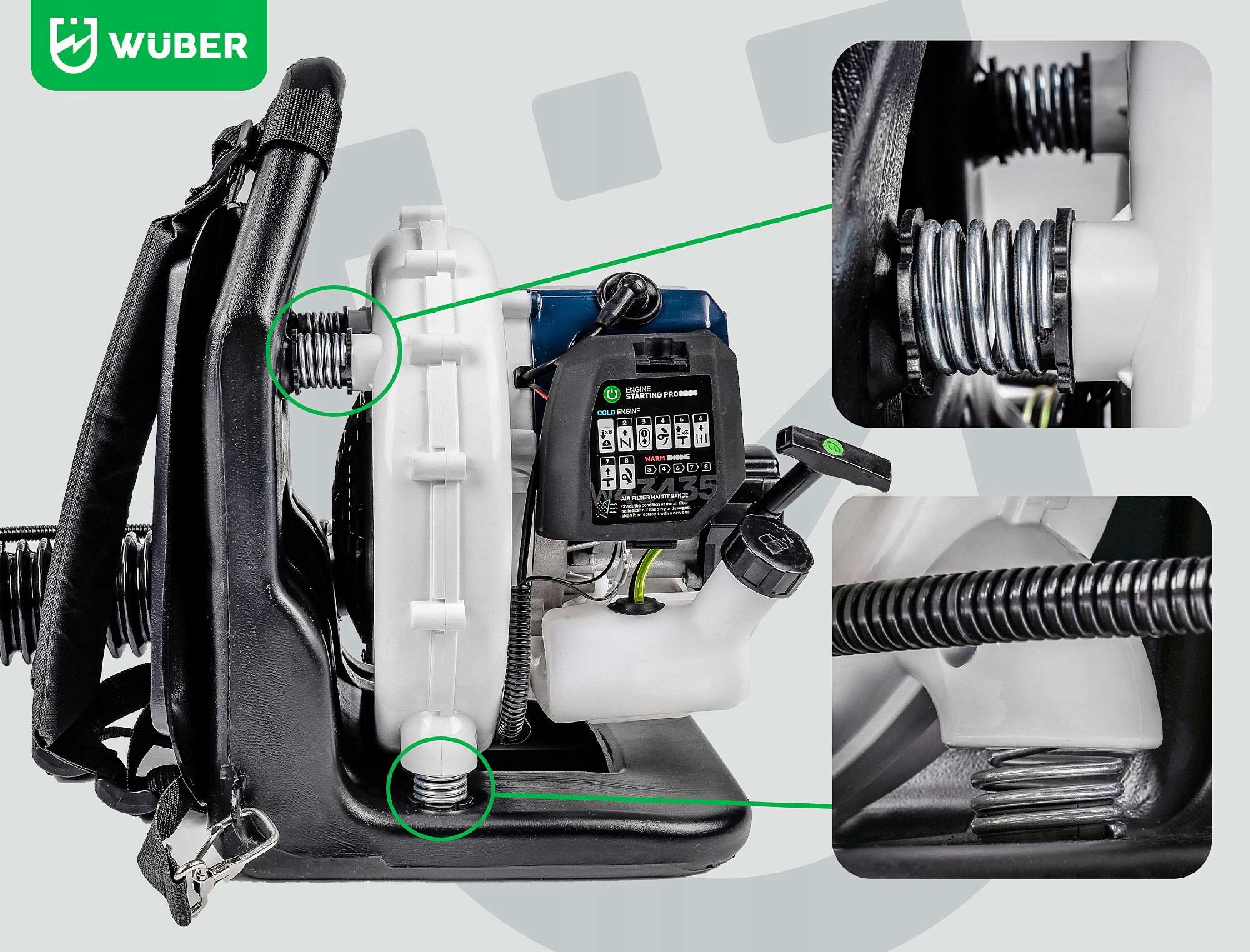 Повітродувка також обладнана системою легкого запуску та легким доступом до повітряного фільтра та свічки запалювання, що спрощує технічне обслуговування та щоденну експлуатацію.